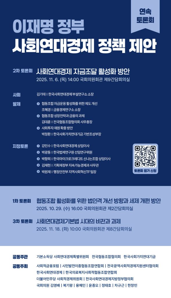 11월 6일 국회서 사회연대경제 자금조달 활성화 방안 모색(10.30)