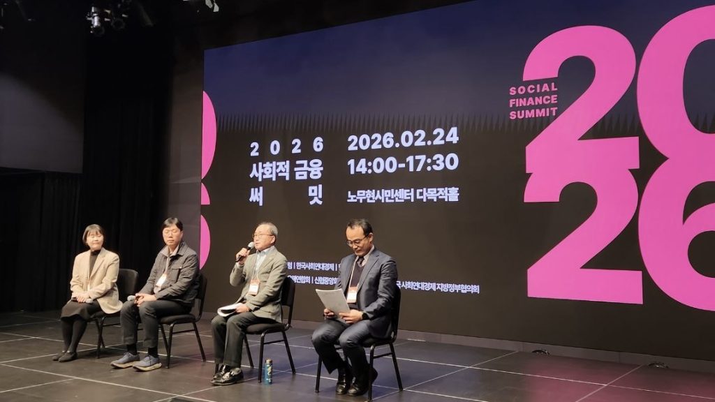 사회적금융포럼과 한국사회연대경제, 한국사회가치연대기금은 24일 서울 종로구 노무현시민센터 다목적홀에서 ‘2026 사회적 금융 써밋’을 공동 개최했다고 밝혔다. 이번 행사는 사회적 가치를 추구하는 기업과 사업의 성장을 지원하는 사회적 금융 생태계 전문가와 활동가들이 모여 새로운 비전과 발전 방향을 모색하기 위해 마련됐다.